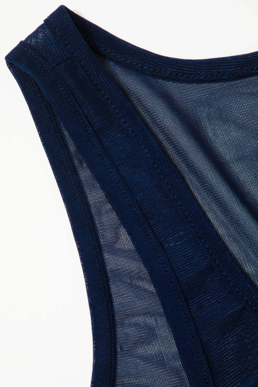 DetailsOccasion: CasualCategory: DressesComposition: 95% Polyester, 5% ElastaneSheer: SheerFabric: MeshColor: BlueMeasur…